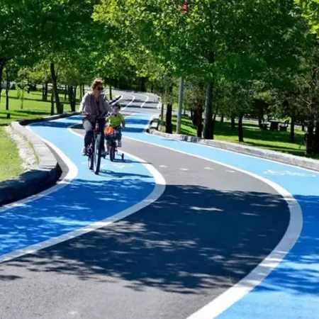 Bisiklet yolları için genellikle uluslararası standart olan yeşil ve mavi renkler tercih edilse de, dekoratif asfalt boyama uygulamalarında geniş bir renk kartelası sunmaktayız.