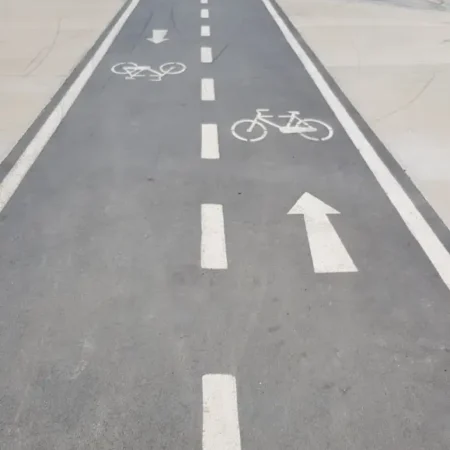 Bisiklet yollarının renklendirilmesi ve asfaltın özel boyalarla kaplanması, kentsel hareketliliğin güvenli bir şekilde sürdürülmesini sağlar. Özellikle karma trafiğin bulunduğu bölgelerde, bisiklet yolunun belirgin bir renkle (genellikle mavi veya yeşil) boyanması, motorlu taşıt sürücülerinin bu alanı fark etmesini sağlar. Bu durum, olası kaza risklerini minimize ederken bisiklet kullanıcılarına kendilerini güvende hissettirir.